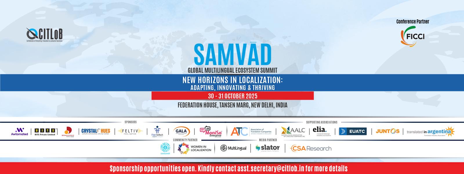 Join us at SAMVĀD 2025 - the flagship annual conference hosted by the Confederation of Interpreting, Translation, and Localization Businesses (CITLoB) - to be part of the most prestigious gathering in the language services industry in Asia. This two-day conference will bring together industry leaders, technology innovators, and language professionals to explore the tremendous potential South Asia offers in the fields of localization, translation, and language technology.