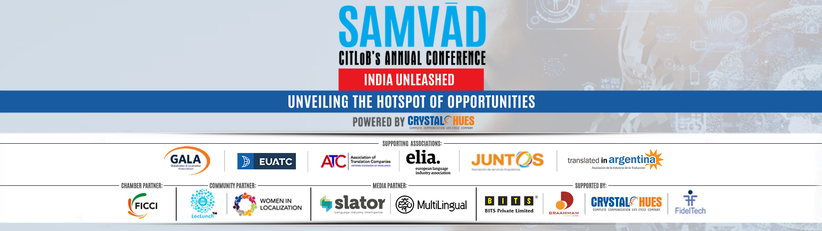 SAMVĀD, the marquee conference of language professionals in South Asia held on 6 October 2023, saw over 150 delegates and speakers from across the globe. Aptly themed "India Unleashed - Unveiling the Hotspot of Opportunities", the event saw over 30 global luminaries as speakers including the leaders of leading language industry associations and communities. Announcing the opening of the conference SAMVĀD, Biraj Rath, CEO of Braahmam, acknowledged the Title sponsor Crystal Hues, Silver sponsors Ailaysa, BITS and Braahmam and Bronze sponsors Accent and Mediawen. He also acknowledged the industry association partners ATC, EUATC, GALA, Elia, Juntos, Translated in Argentia, Women in Localization, LocLunch, media and research partners Slator, Multilingual, Nimdzi and the Chamber Partner, FICCI, leading trade association representing Indian businesses.